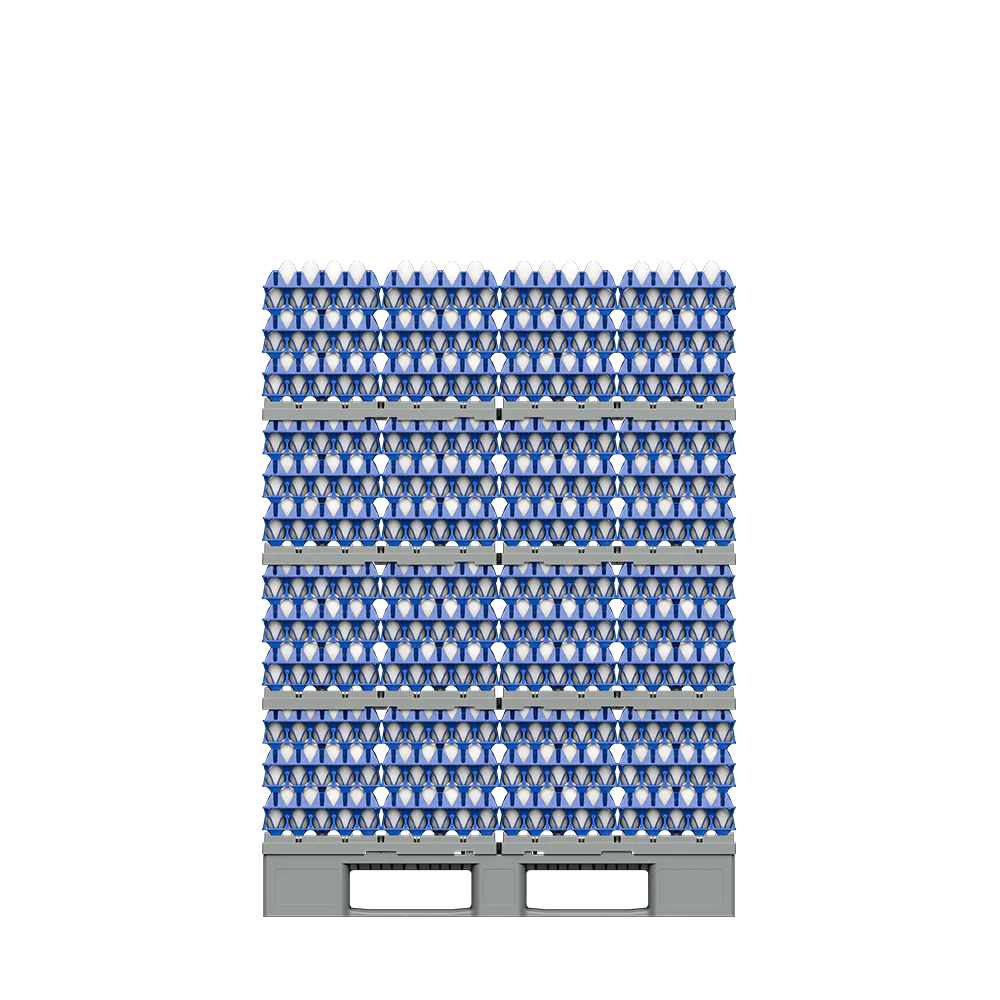 EggsCargoSystem XL is developed for the transportation of larger eggs, like duck and turkey eggs. The XL system is particularly suitable for the transport of hatching eggs. It makes work easier and minimizes egg breakage. In addition, the entire system is also suitable for picking up and unpacking with robots.