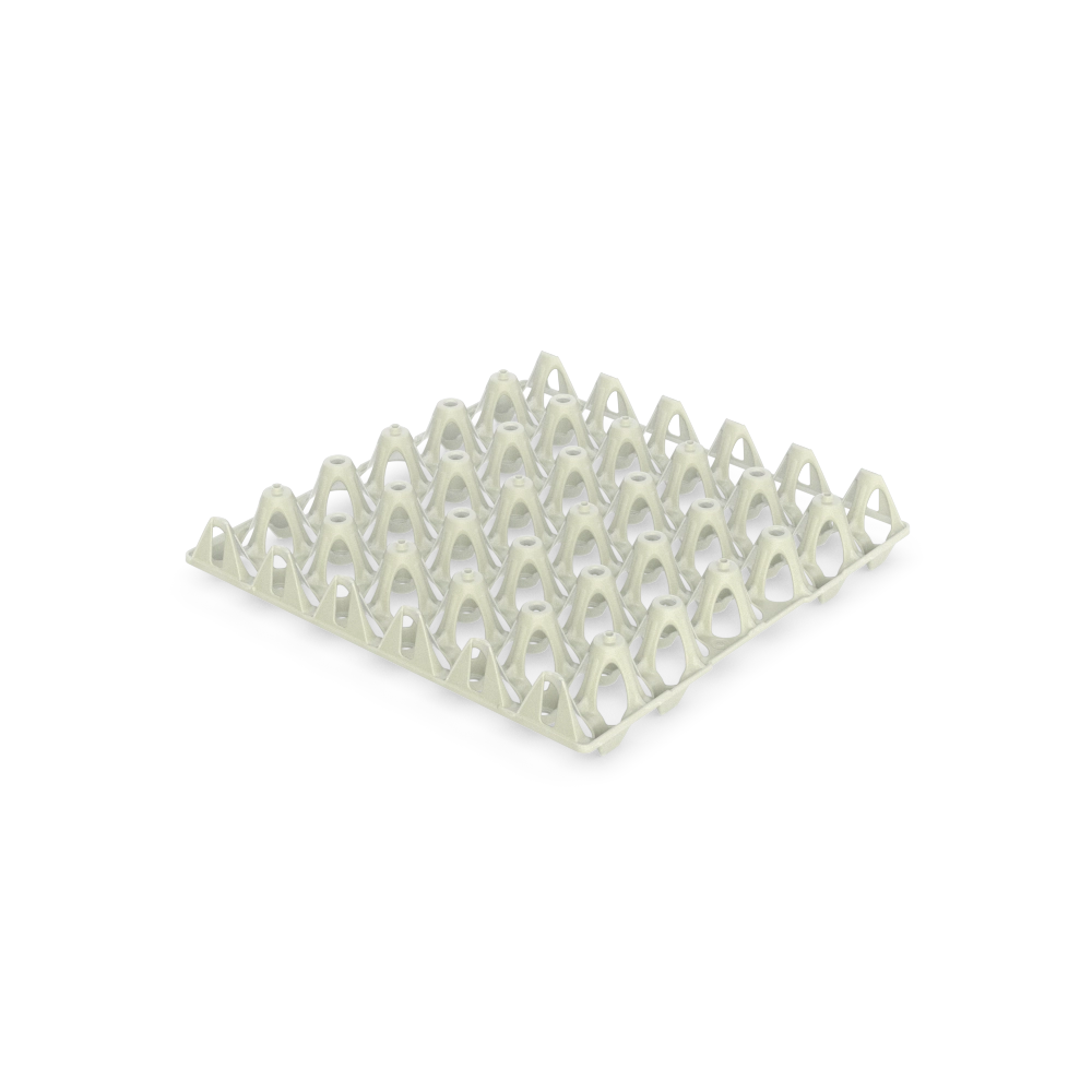 The Tray Jumbo 1.0 is a plastic egg tray made of high-quality virgin HDPE material and fitted with UV stabilisation. Its strong edges guarantee maximum safety against egg breakage. For easy identification, the trays can be customised with a logo tag and in all available RAL colours. The Tray Jumbo 1.0 is strong, resistant and durable and its centrepieces allow precise and safe stacking. This product can be provided with BSA (Bio-security-additive) treatment to prevent cross-contamination. The Jumbo 1.0 version is suitable for medium to large eggs weighing over 74 g.