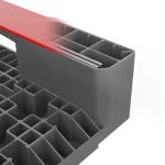 Pallet Cargo is available in virgin material or in 100% black recycled material, and only the virgin plastic version can be fitted with reinforcing feet. The virgin material pallet is also approved for food use (HDPE). It can be customised (name/numbering).
