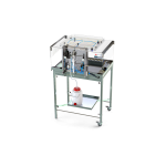 Esta cabina moderna é leve e facilmente deslocável em incubadoras de pequena e média dimensão. Alimentado por ar pneumático, este dispositivo pode ser ligado a uma fonte de ar interna ou a um compressor de ar móvel. A vacinação dos pintos do dia é efectuada manualmente por um operador de incubadora. O dispositivo está equipado com um único cilindro ajustável com uma gama de dosagem de vacinação de 1-30 ml. A cabina foi concebida especificamente para administrar vacinas vivas com a garantia de uma distribuição e cobertura corretas graças a um sistema de quatro bicos ajustáveis ao longo do eixo principal da cabina. A cabina é fornecida com um conjunto completo de bicos, com tamanhos de gota de 120 μm a 300 μm, estando também incluído um recipiente de plástico de 10 litros para a contenção da vacina.