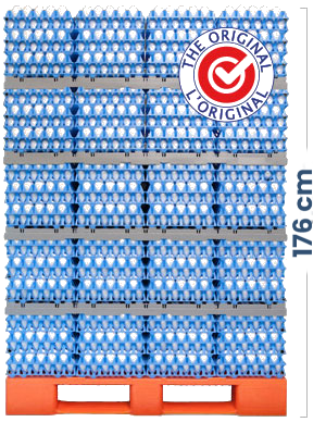 EggsCargoSystem® Mini содержит специальный небольшой поддон и продуманные разделители для разделения 4 стопок. Лотки, входящие в систему, точно такие же, как и в традиционном EggsCargoSystem®. EggsCargoSystem® Mini специально предназначена для поставок яиц в крупные учреждения, службы общественного питания, сети быстрого питания и розничной торговли.